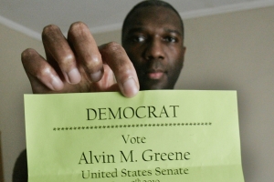 While the MSM is busy trying to smear Alvin Greene, I am not the only blogger who believes that Mr. Greene is simply a rare long shot who won an obscure election against a weak opponent. For example, see this post from Salon. It is instructive that the little-known Vic Rawl, who was expected to win the Democratic primary, was thought to have absolutely no chance of defeating the Republican incumbent, Sen. Jim DeMint. Maybe that’s why Democrats voted for Mr. Greene instead. Even if your man is going to lose, you can at least send a message.
