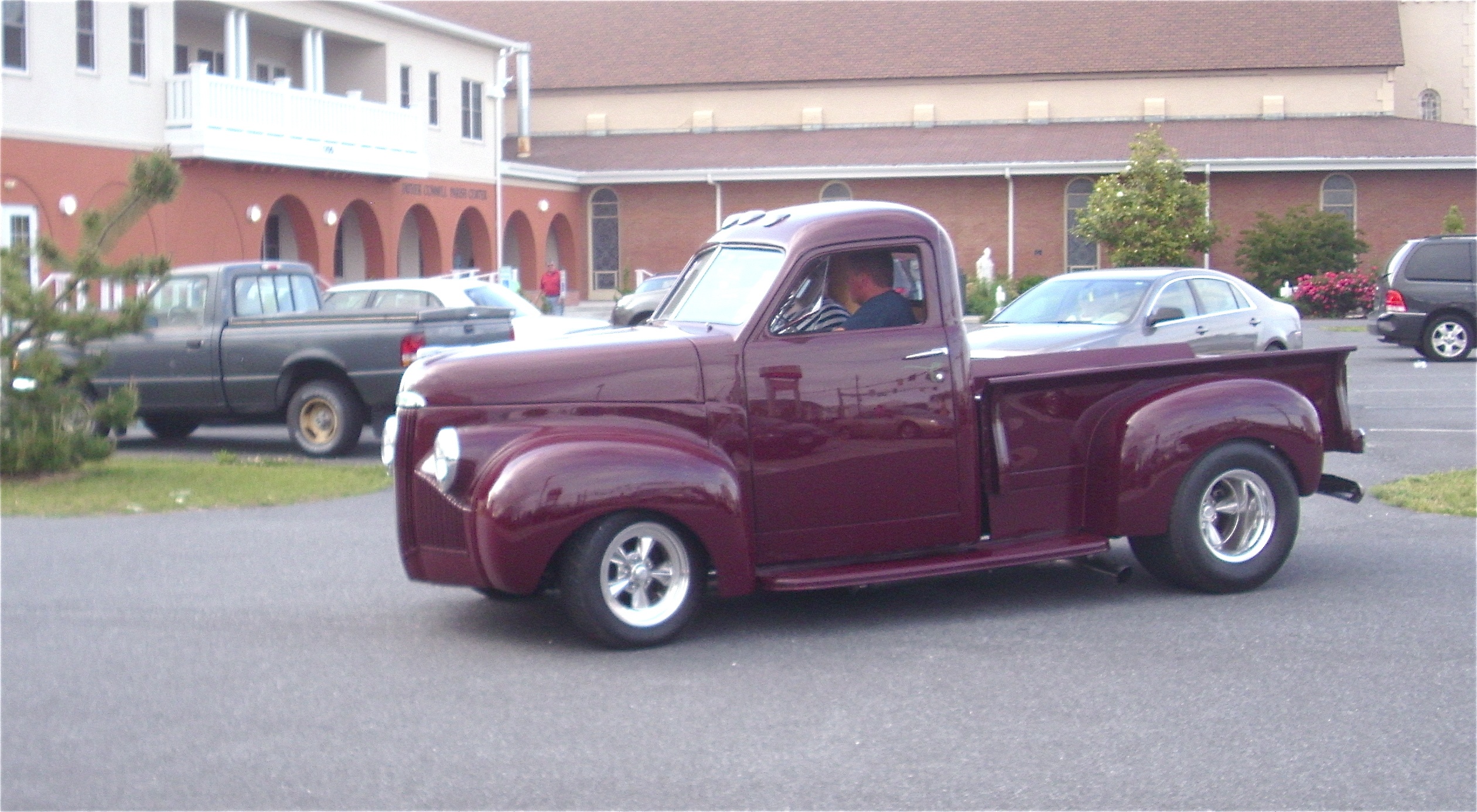 See, you never know what you might learn on any given day, and you never know what might happen next. Expect the unexpected. So here’s this shiny burgundy Studebaker pickup waiting for me in the church parking lot.